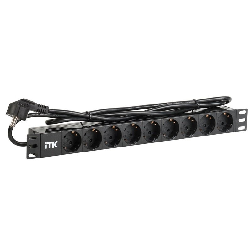 PH22-9D1-P ITK Блок розеток 19", 9 розеток нем. ст, 1U, шнур 2м вилка нем. ст ПВХ чер