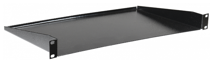 Консольные полки рассчитаны на размещение небольшого по габаритам и общей массе оборудования. Конструкция данных полок рассчитана на крепление полки только на одной паре монтажных профилей, спереди или сзади, и может быть как с перфорацией для лучшего охлаждения и отведения горячего воздуха, так и без нее.