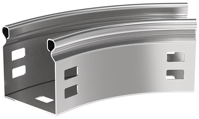 Плавная геометрия аксессуаров обеспечивает безопасную прокладку кабеля при повороте трассы, исключая его повреждение. Широкий ассортимент аксессуаров позволяет спроектировать кабельную трассу любой степени сложности.