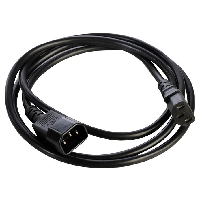 Шнур (кабель) выполнен из ПВХ черного цвета, имеет опрессованную розетку IEC 60320 C13 и вилку IEC 60320 C14. Кабель состоит из трех многожильных проводов сечением 1 мм2, имеет заземление. Номинальный ток нагрузки: 10А. Номинально напряжение: 220-250 В. Длина кабеля 3 метра.