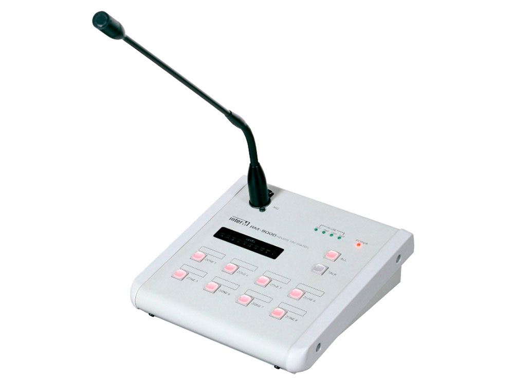 RM-8000 Микрофонная консоль, селектор 8 зон, сигнал "Гонг" - 3 вида, контрольный громкоговоритель, RS-422, применяется с матричным коммутатором Inter-M PX-8000