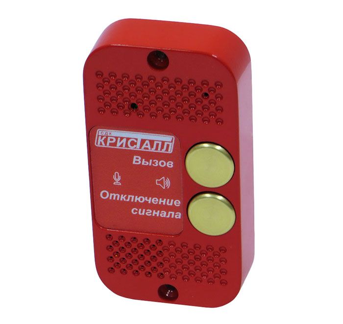 Накладное вандалозащищенное переговорное устройство со встроенной кнопкой отключения оповещателя устанавливается в зонах безопасности инвалидов, лифтовых холлах и других технологических помещениях. Обеспечивает передачу сигнала "Вызов" на диспетчерский пункт, двухстороннюю переговорную связь между диспетчерским пунктом и местом установки переговорного устройства, индикацию режима работы - прием/передача, отключение свето-звукового оповещателя. Связь полудуплексная, управление разговором осуществляет диспетчер.