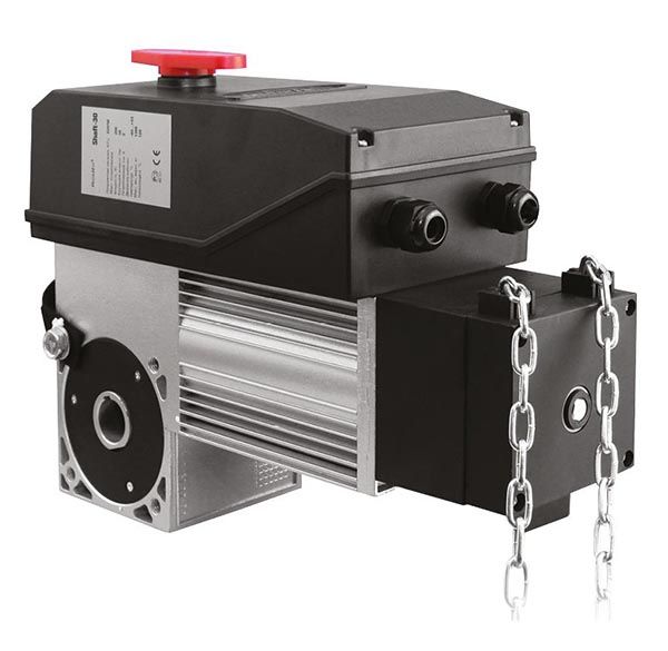 Комплект привода для промышленных секционных ворот до 28 м², 380 В, 350 Вт, 60 Нм, 32 об/мин, интенсивность использования 60 %, IP65, -20…+55 °С. Комплект: привод SHAFT-60 IP65, крепежный кронштейн, цепь SHCHAIN 8 м, кнопка Button-3 с кабелем 8 м