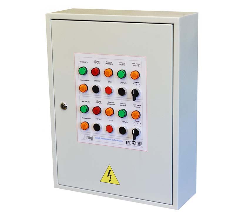 Шкаф управления двумя пожарными задвижками. Управление задвижками происходит автономно. В автоматическом режиме управление задвижкой осуществляется подачей команд "Открыть" и "Закрыть". Команды управления от системы пожарной сигнализации или иного прибора управления подаются размыканием НЗ сухого контакта. (по запросу - замыканием НР контакта). Выполняется контроль исправности (на обрыв и короткое замыкание) цепи управления. Выполняется контроль на наличие и качество электропитания (уровень напряжения, чередование, перекос, слипание фаз, обрыв нейтрали). В соответствии с ГОСТ 53325-2012, цепь подключения привода задвижки контролируется на обрыв. Выходные сигналы со шкафа формируются в виде переключения НЗ/НР групп сухих контактов. Шкаф применяется в системах противопожарного водопровода, автоматического спринклерного и дренчерного пожаротушения. Шкаф может использоваться для управления входными задвижками, секционными задвижками, а также задвижками пожарного резервуара.