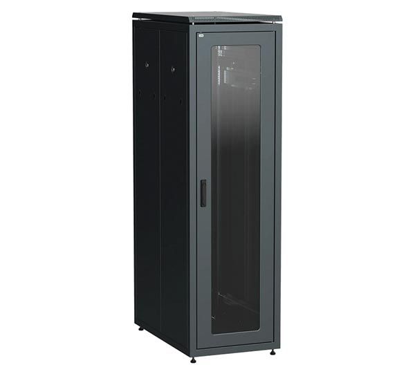 Шкаф напольный 42U (2050х600х600мм) дверь стекло, черный ITK LN05-42U66-G