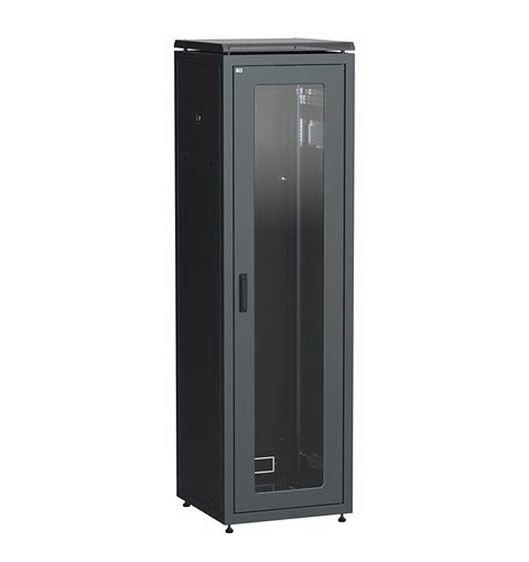 Шкаф напольный 42U (2050х600х800мм) стек. пер. дв. зад. мет. чер. LN05-42U68-GM ITK LINEA N