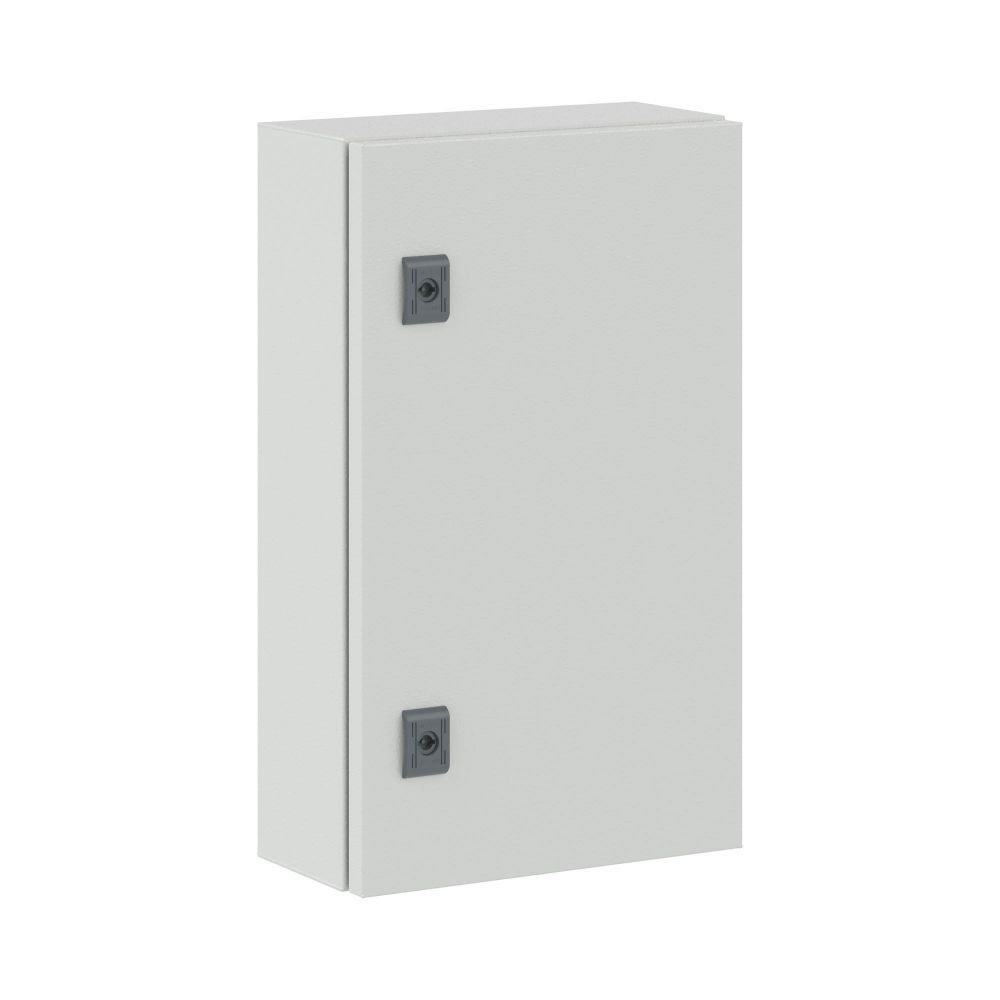 "RAM block" – система универсальных металлических корпусов – сварных и сборных, а также стоек управления. Сборные металлические шкафы СE предназначены для защиты от внешнего воздействия оборудования в системах автоматизации и распределения электроэнергии. Корпуса CE имеют всего 4 сварных шва, что повышает прочность конструкции. Корпуса изготавливаются из листовой стали толщиной 1,5 мм с порошковой полиэфирной окраской. Полиуретановый уплотнитель улучшает герметизацию (максимальная степень пыле- и влагозащиты - IP 65 - IP 66). В комплект поставки корпусов входят: быстросъемный фланец, монтажные аксессуары, монтажная плата. По умолчанию шкафы укомплектованы стандартным замком с личинкой под ключ с двойной бородкой, однако замок при необходимости может быть заменен. Сборные металлические шкафы CE соответствуют российским стандартам, они могут устанавливаться в сейсмоопасных зонах и имеют необходимые сертификаты. Корпуса со сплошной дверью применяются в системах автоматизации. Уровень ударопрочности корпусов - IK 10. Габариты навесного шкафа: 500х300х150 мм.