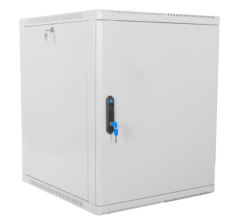 Настенный шкаф 19" ШРН имеет цельнометаллическую сварную конструкцию, он удобен для быстрой установки и монтажа оборудования, так как не требует сборки. Отсутствие острых углов с фронтальной стороны повышают безопасность при эксплуатации и обслуживании шкафов, что помогает исключить человеческие травмы при соприкосновении со шкафом. Комплектация со сплошной металлической дверью. Новая конструкция стеклянной двери с механическим креплением стекла увеличивает её жесткость, и обеспечивает легкую замену стекла при его повреждении. Возможна установка двери, как с правой, так и с левой стороны. Новый усиленный точечный замок с поворотной ручкой увеличивает жесткость фиксации двери в закрытом положении и защиту от несанкционированного доступа, а также обеспечивает удобство при её открывании.