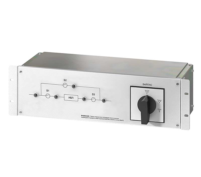 Модуль внешнего байпаса EBM-10-RT применяется совместно с однофазными моделями ИБП SR1106L и SR1110L стоечного исполнения выходной мощностью 6 и 10 кВА. Устройство предназначено для организации ручного, безразрывного переключения питания нагрузки с ИБП на входную сеть для проведения настройки, сервисного обслуживания или замены источника бесперебойного питания.