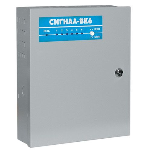 Сигнал-ВК6, Прибор приемно-контрольный охр-пожарный на 6ШС. 16 различных конфигураций, до трех разделов. Взятие/снятие под охрану с помощью ключей Touch Memory, встроенного переключателя или внешнего шифрустройства. . Возможность установки аккумулятора 7 Ач