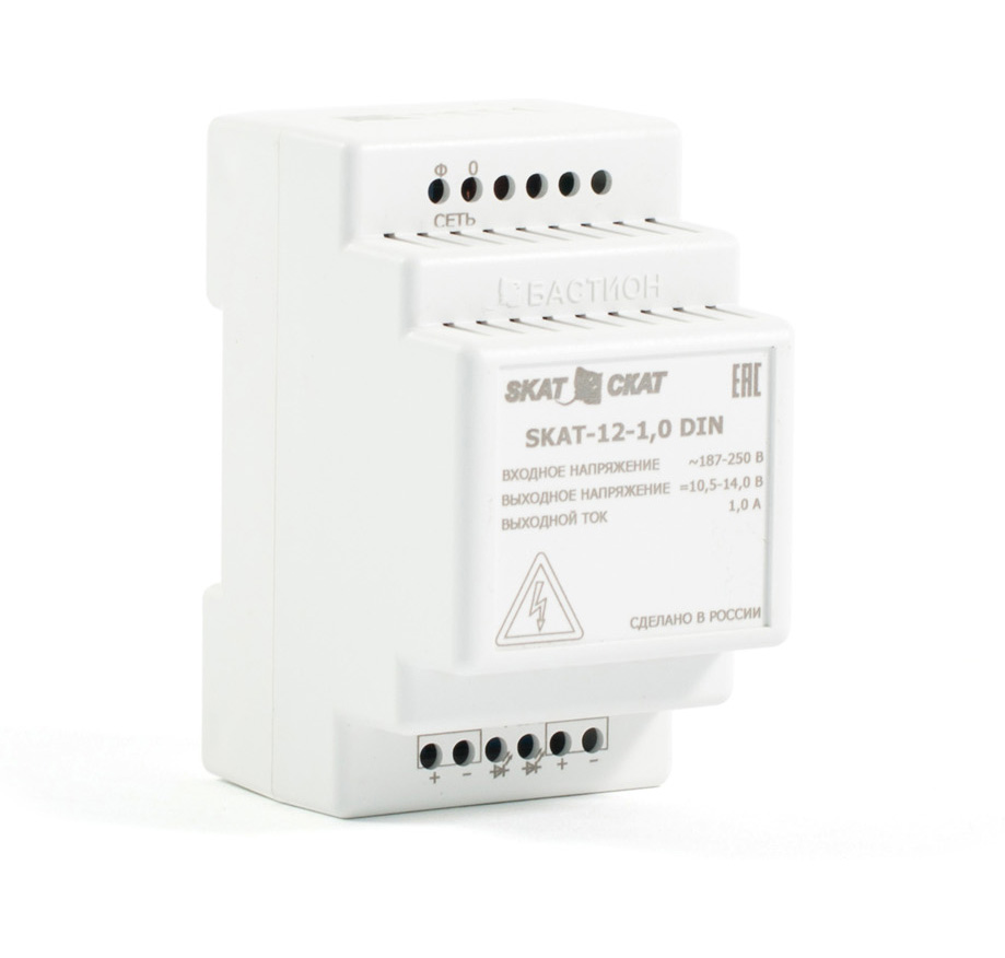 Источник бесперебойного питания SKAT-12-1.0-DIN (СКАТ ИБП-12/1-DIN) предназначен для электропитания радиоэлектронной аппаратуры номинальным напряжением 12 В. Область применения: питание систем охранно-пожарной сигнализации, контроля и управления доступом, видеонаблюдения, устройств автоматики, домофонов, телекоммуникационного оборудования и др.
