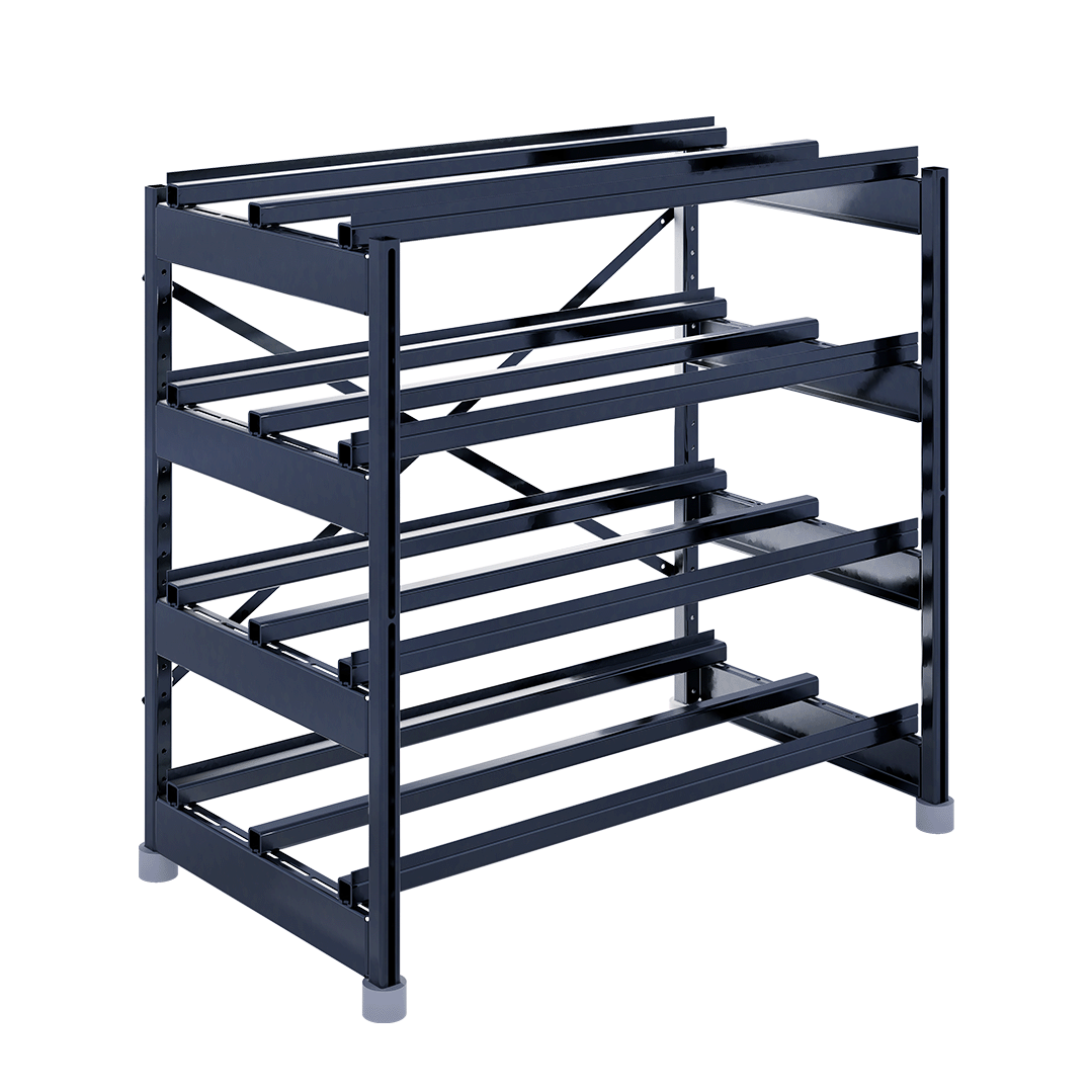 Сборно-разборная система позволяет подстраивать положение поперечных балок, исходя из размеров аккумулятора, а также перемещать ярусы в допустимых диапазонах.