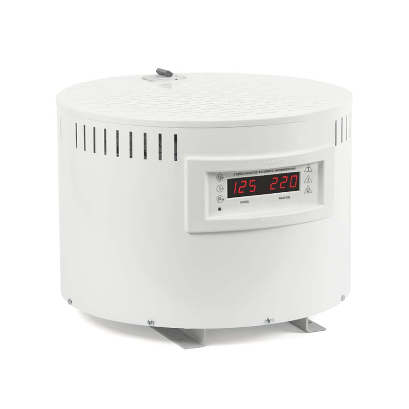 Стабилизатор напряжения для всего дома. Мощность нагрузки до 10 кВА. 9 ступеней регулирования. Точность стабилизации 7%. Рабочий диапазон напряжения сети 120-280В. Расширенный диапазон напряжение сети 80-295В.