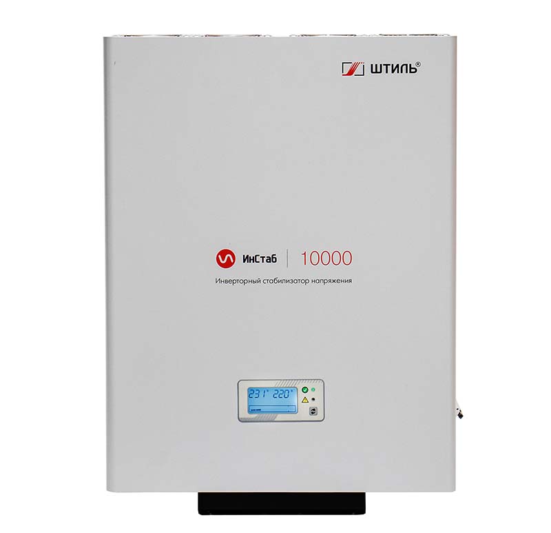 Однофазный инверторный стабилизатор напряжения IS10000 разработан специально для российских сетей и предназначен для защиты от нестабильного напряжения как отдельных приборов, так и группы оборудования с суммарной потребляемой мощностью до 10 кВА/9 кВт