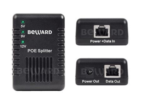 PoE-сплиттер IEEE 802.3 af (13 Вт), 1 порт, до 100 м, 5/9/12 В (DC), защита выхода питания от КЗ и перегрузки, защита от электростатики