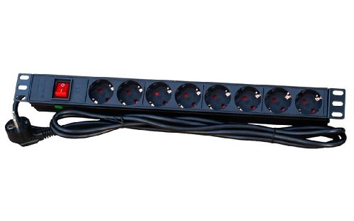 SU-08 Блок розеток 220 В, 8 розеток, 10 А, выключатель, 1U ROXTON