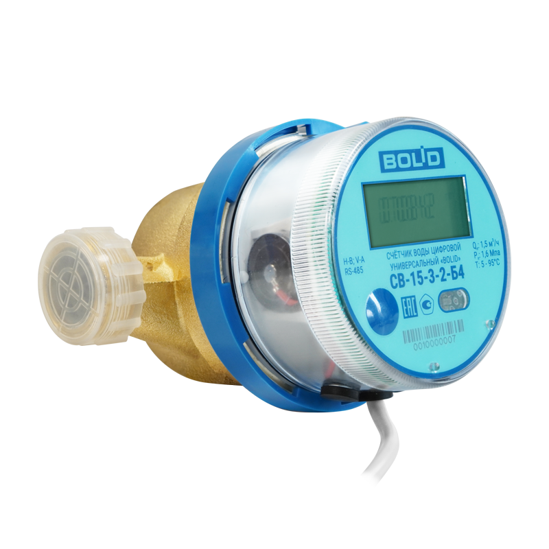 Универсальный цифровой счётчик воды СВ-15-3-2-Б4 представляет собой счётчик холодной и горячей воды производства компании НВП «Болид» оснащенный ЖКИ дисплеем и интерфейсом RS-485. Использование счётчика возможно как в составе систем АСКУЭ, так и автономно. Рекомендуется применение в составе системы АСКУЭ «Ресурс».