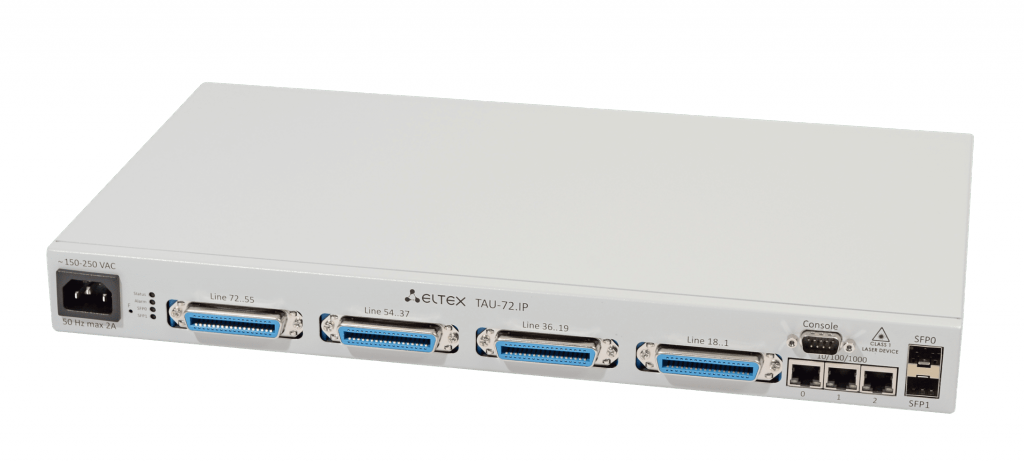 72 порта FXS. Блок питания встроенный, на выбор: 220V AC или 48V DC.