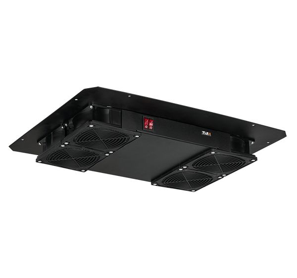 Вентиляторный блок предназначен для принудительного охлаждения активного оборудования, установленного в телекоммуникационном шкафу, путем отвода теплых воздушных масс из внутреннего объем шкафа. Блок устанавливается в специальные ниши на крыше или в основании напольных шкафов TLK и совместимы с сериями TFE, TFL, TFR, TFA. При этом шкафы глубиной (600 мм) предусматривают только верхнее размещение вентиляторного блока. Для более подробной информации сверьтесь с таблицей в разделе "Описание" к шкафу. Питание вентиляторного блока на 4 вентилятора осуществляется с помощью подключения шнура питания к сети с напряжением 220 В, 50 Гц. Разъем питания на вентиляторном блоке типа IEC-60320 C14. Вентиляторы закрыты решетками с обеих сторон. Блок с маркировкой «F» имеет встроенные фильтры для предотвращения засасывания пыли во внутреннее пространство шкафа. Вентиляторный блок конструктивно выполнены с монтажным фланцем для удобства установки. Несущая конструкция вентиляторного блока выполнена из 2 мм стали и оснащена четырьмя вентиляторами. Антикоррозионное и декоративное покрытие выполнено ударопрочной порошковой краской черного цвета.