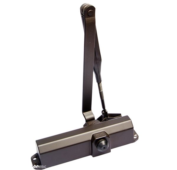 Доводчик для дверей весом до 120 кг, двухскоростной, установочный размер 191х19 мм, габариты 205х46х40 мм, -10...+40 °С, цвет - коричневый
