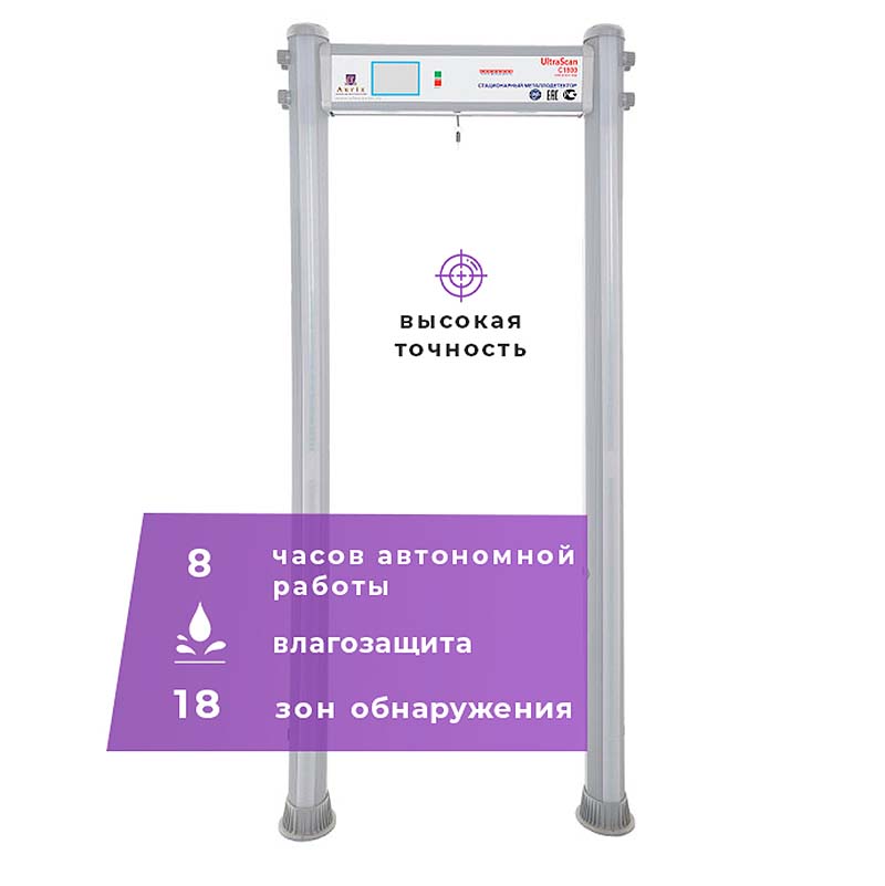 Стационарный металлоискатель UltraScan C1800 WP обеспечивает требуемый уровень безопасности в сочетании с высокой эффективностью работы. Применение современных технологий обеспечивает большую скорость прохода людей через металлодетектор с минимальным количеством ложных сигналов тревоги.