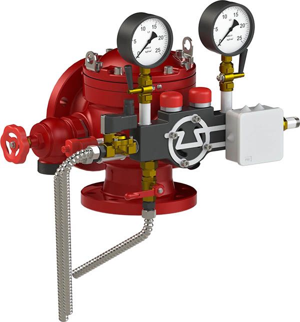 Узлы управления дренчерные предназначены для размещения в установках водяного и пенного пожаротушения на особо пожаро- и взрывоопасных объектах, контроля состояния и проверки работоспособности указанных установок в процессе эксплуатации, а также для пуска огнетушащего вещества, выдачи сигнала для формирования командного импульса на управление элементами пожарной автоматики. Запуск системы осуществляется от побудительной магистрали, реализованной в виде: комбинированного гидро-, электропривода; пневмопривода.