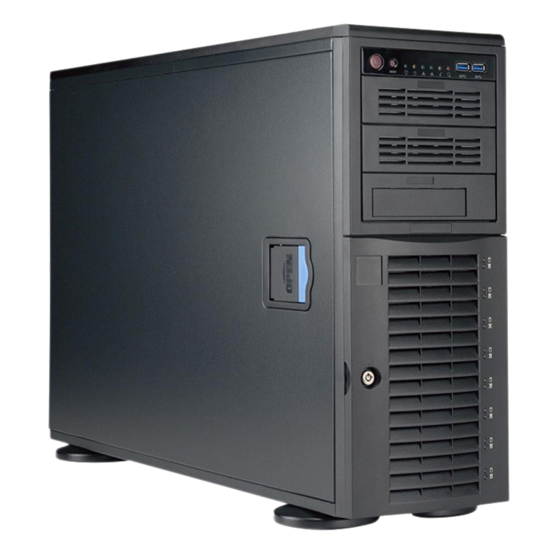 Серверный корпус Tower (178х452х647 мм), Astra Linux SE «Орёл», полезный архив ёмкостью 90 Тб – программный RAID 5 по умолчанию (жёсткие диски HDD в комплекте с сервером), 1хHDMI, 1xDisplayPort, 1xDVI.